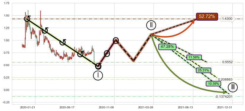 ➣ 循环浪继续向下【平均值】位置(2021-11-17, 0.208883),匹配聚类样本比例53.54%, 可能性概率25.31%