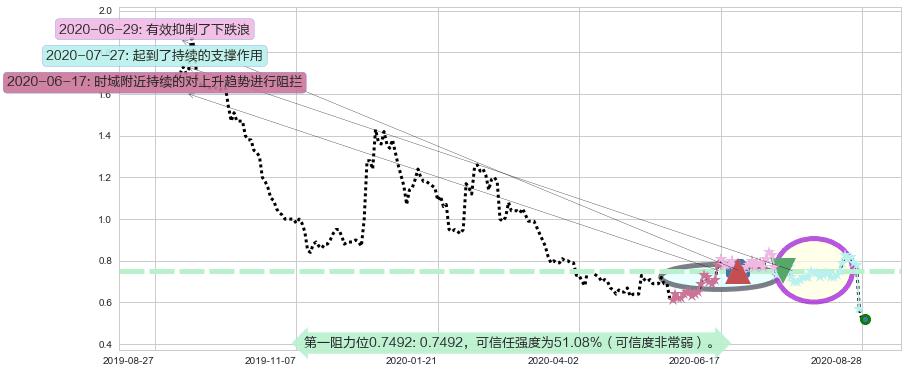♘ 阻力价格位0.7492,可信任强度51.08%,距离最后交易2020-08-31形成的收盘价格0.5200相差 +44.08%
