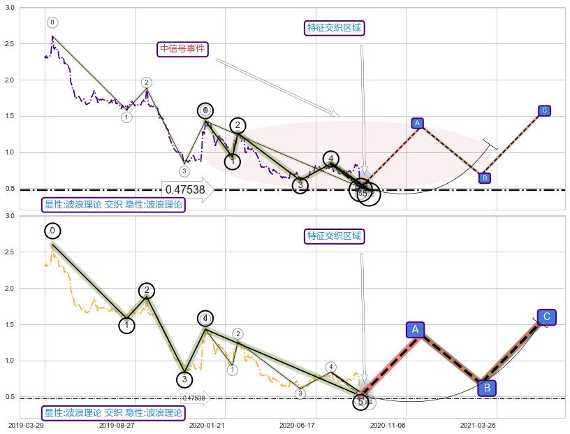 ➢ 循环浪继续向下【最低】位置(2021-12-31, -0.1374201),匹配聚类样本比例21.97%, 可能性概率10.39%