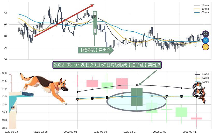 ⚀ 2022-03-07日显现 20日-30日-60日均线 【绝命跳】卖出点 看空信号,后市看跌,卖出