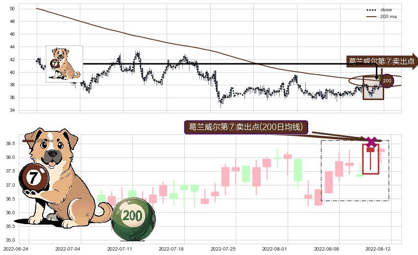 ⚀ 2022-08-11-日显现 葛兰威尔均线 200日均线 第⑦卖出点 下降趋势的中继信号,后市看跌,卖出信号