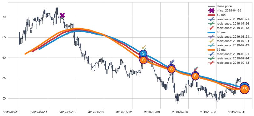 ⚁ MA60和MA90走势平行,且始终保持在短距离内,MA120始终在短中期均线上方,与短中期均线保持一定的距离,微微下行