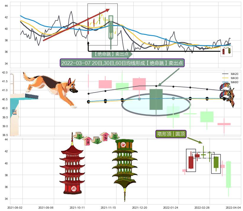 ➢ 高点影线(2022-04-20: 37.70 )→再次回踩→第一根k线低点(2022-04-04: 37.65 )