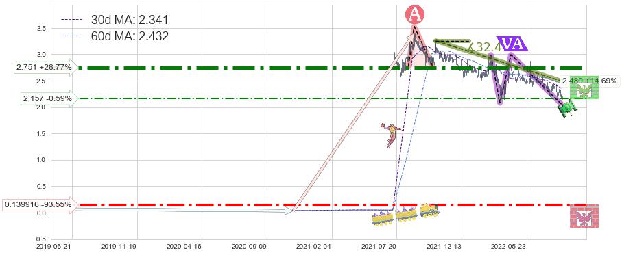♘ 阻力价格位2.751,可信任强度93.49%,距离最后交易2022-08-12形成的收盘价格2.170相差 +26.77%