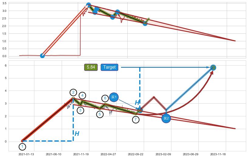 ➢ 最小中继整理涨幅→𝐇: 3.366 (𝐇楔型旗杆的长度:楔型起点→顶点)