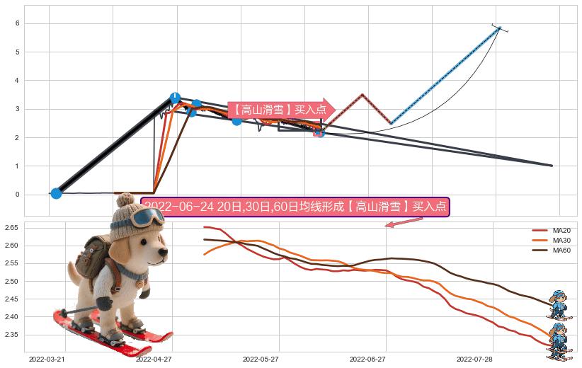 ➣ 收盘价(2022-08-02: 2.250 )→回踩→第一根k线高点(2022-07-29: 2.280 )