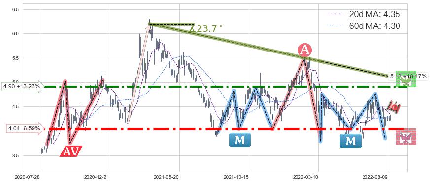 ♞ 20日均线:4.35,60日均线:4.30→ 快线>慢线