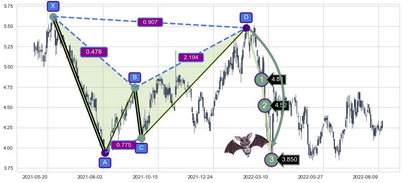 ➣ 已完成【蝙蝠】形态起点X: 2021-05-27, 终点D: 2022-02-10, 共176交易日