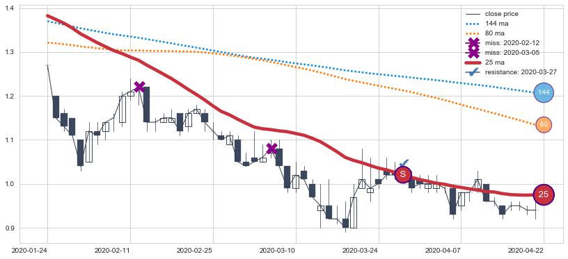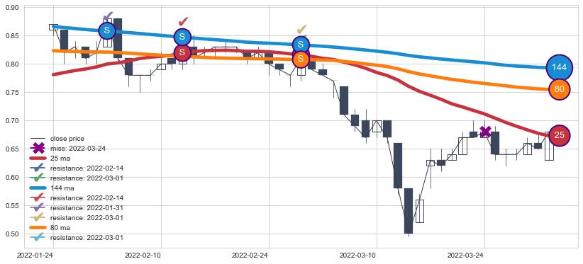 下跌趋势2022-01-24-2022-04-01,均线144, 25, 80确认关键阻力3处
