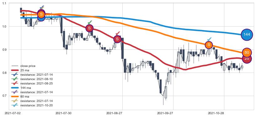 下跌趋势2021-07-02-2021-11-08,均线144, 25, 80确认关键阻力4处