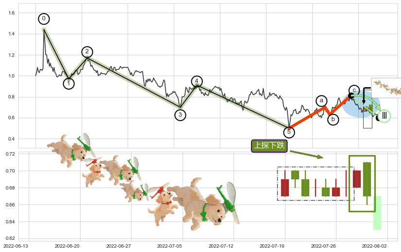 | 10 🅚:墓碑十字线(墓碑线) ➕ 🌊:波浪理论下跌5浪延续:猜想C点强阻力小反弹终止,猜想保持下跌5浪方向下行(均值回复后大周期继续趋势跟踪) ☞ 看空信号 ⇥ 【🅚线】交织【图形】⇥ 综合量化分数: 44 | > |