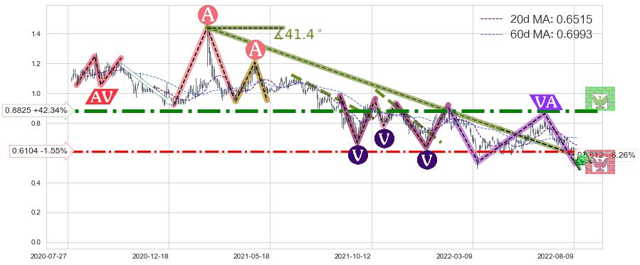 ♘ 阻力价格位0.8825,可信任强度99.00%,距离最后交易2022-08-12形成的收盘价格0.6200相差 +42.34%