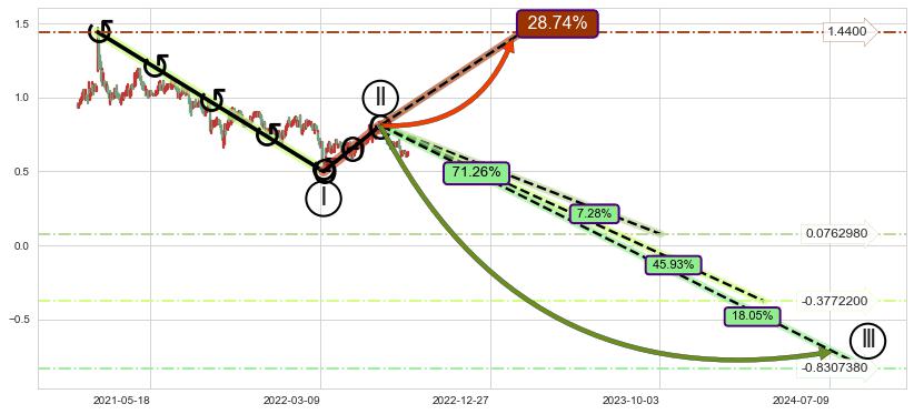 ➣ 循环浪继续向下【平均值】位置(2024-03-22, -0.3772200),匹配聚类样本比例64.45%, 可能性概率45.93%