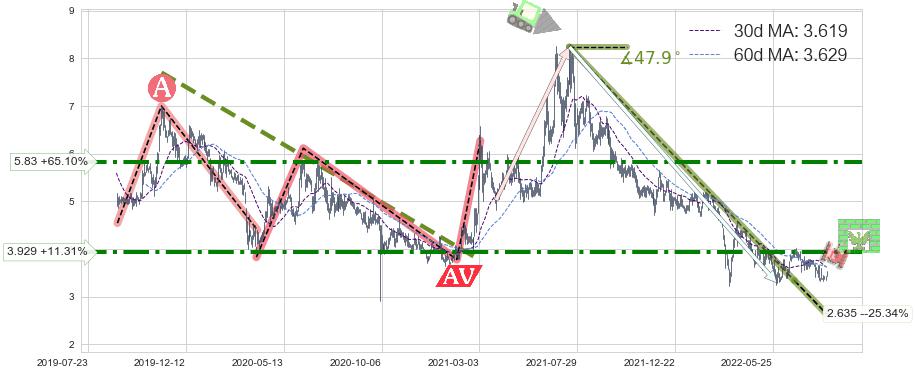 ♘ 阻力价格位5.83,可信任强度74.23%,距离最后交易2022-08-12形成的收盘价格3.530相差 +65.10%