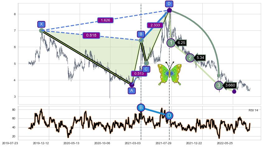 ➣ 已完成【蝴蝶】形态起点X: 2019-11-07, 终点D: 2021-07-19, 共418交易日