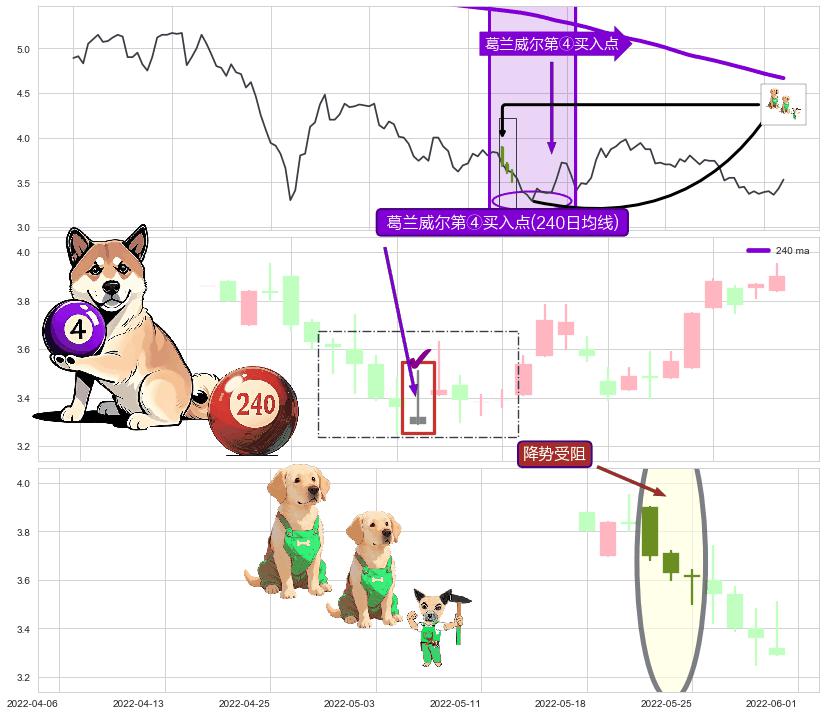 | 4 🅚:两红夹一黑 ➕ 🎢:葛兰威尔第④买入点买入点信号形成后,猜想后续走势持续反弹上升(均值回复) ☞ 看多信号 ⇥ 【均线】交织【🅚线】⇥ 综合量化分数: 52 | > |