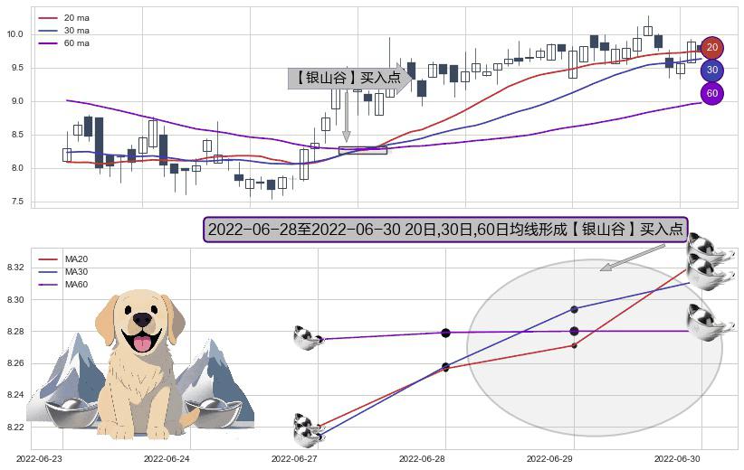 ⚀ 2022-06-29-日至2022-06-30-日显现 20日-30日-60日均线 【银山谷】买入点 看多信号,后市看涨,买入