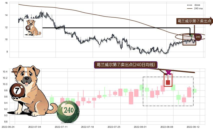⚀ 2022-08-05-日显现 葛兰威尔均线 240日均线 第⑦卖出点 下降趋势的中继信号,后市看跌,卖出信号