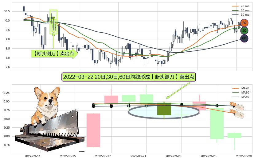 ⚀ 2022-03-22日显现 20日-30日-60日均线 【断头铡刀】卖出点 看空信号,后市看跌,卖出