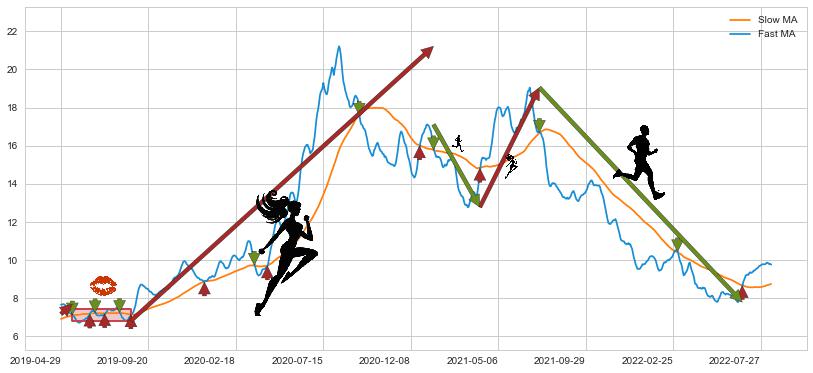 2021-07-15至2022-06-27 慢线与快线呈空头排列, 慢线与快线接触少,无缠绕