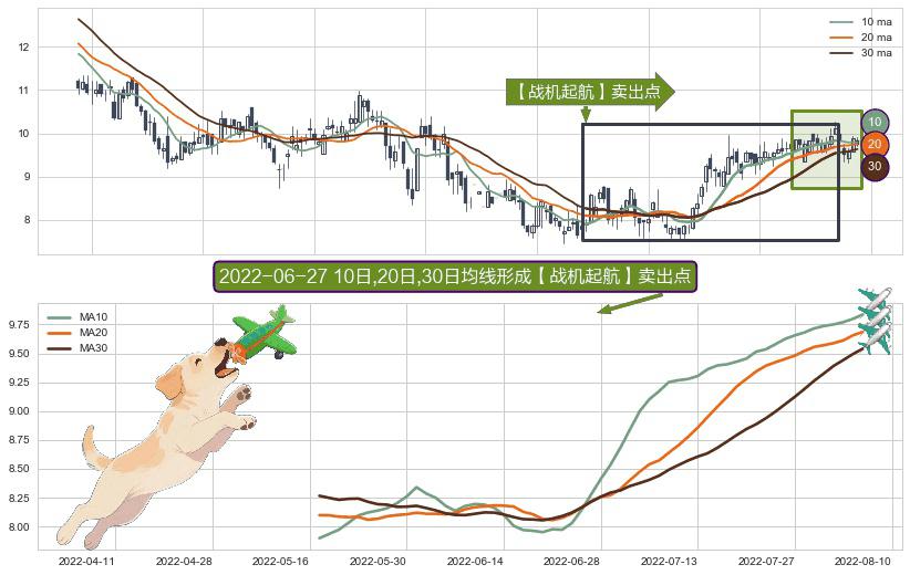 ⚀ 2022-05-17日-2022-08-05日显现 10日-20日-30日均线 【战机起航】卖出点 看空信号,后市看跌,卖出