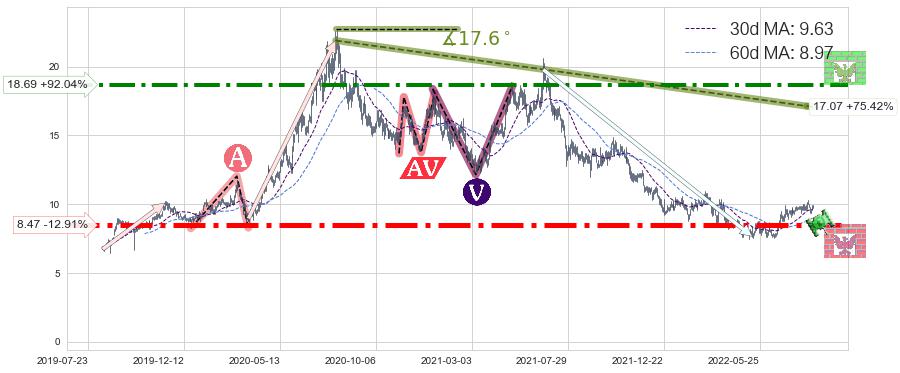 ♘ 阻力价格位18.69,可信任强度73.43%,距离最后交易2022-08-12形成的收盘价格9.73相差 +92.04%