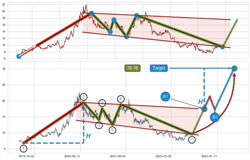 ➣ 最小中继整理涨幅→𝐇: 12.71 (𝐇旗杆的长度:旗杆起点→顶点)