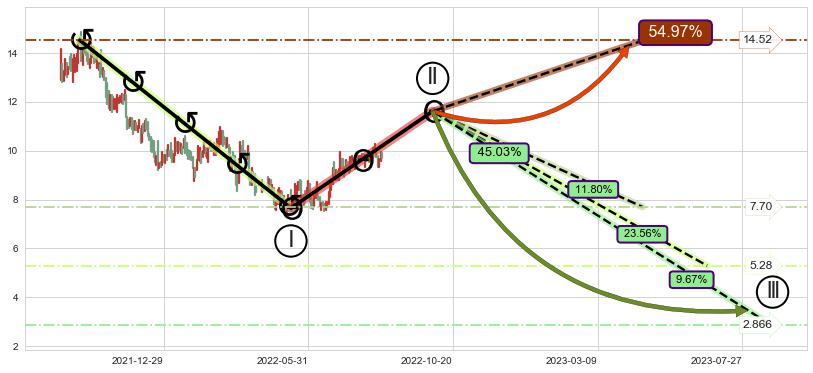 ➣ AI预测: 假定反转启动后, 第❸目标位置(2023-02-10, 7.65)