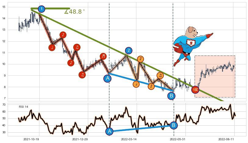 ♘ 阻力价格位13.11,可信任强度92.41%,距离最后交易2022-08-12形成的收盘价格9.73相差 +34.69%