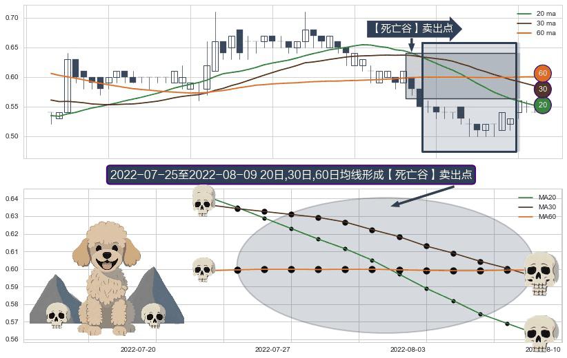 ⚀ 2022-07-26-日至2022-08-09-日显现 20日-30日-60日均线 【死亡谷】卖出点 看空信号,后市看跌,卖出