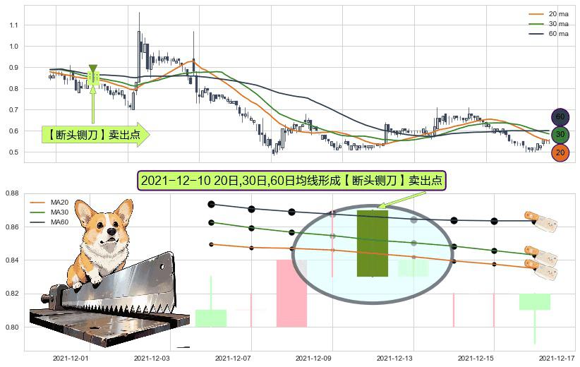 ⚀ 2021-12-10日显现 20日-30日-60日均线 【断头铡刀】卖出点 看空信号,后市看跌,卖出