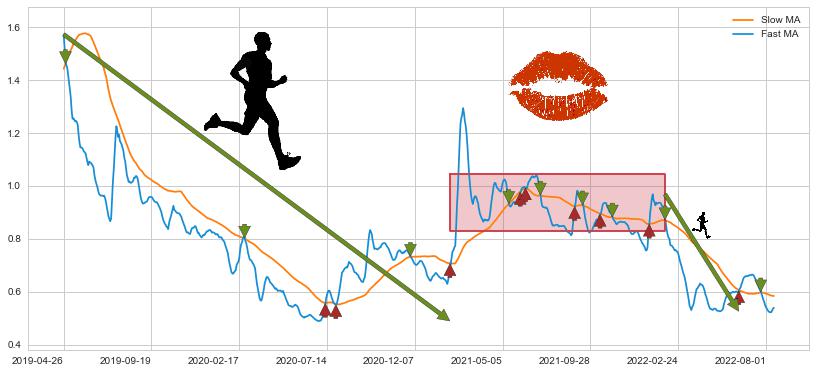2022-01-31至2022-06-16 慢线与快线呈空头排列, 慢线与快线接触少,无缠绕