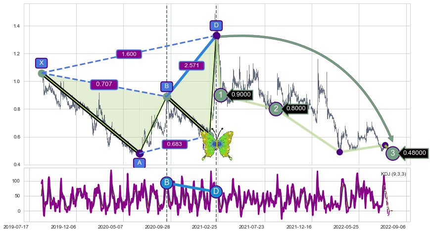 ➣ 已完成【蝴蝶】形态起点X: 2019-08-22, 终点D: 2021-02-22, 共372交易日