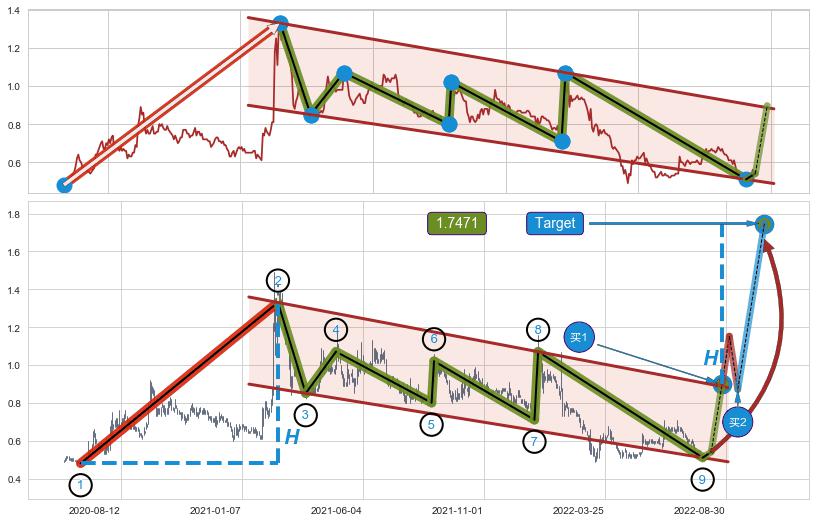 ➢ 2021-03-08到达第❶价格目标位置0.9000