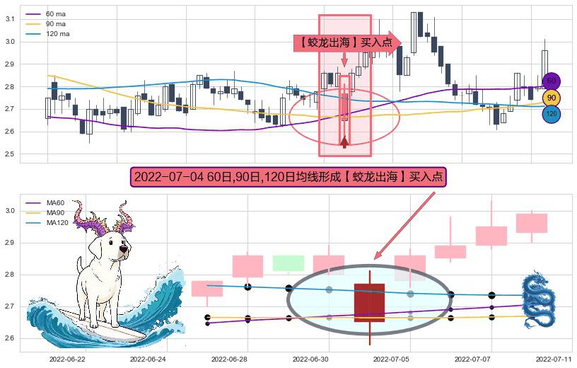 形态多维评估: ⚀ 2022-07-04日显现 60日-90日-120日均线 【蛟龙出海】买入点 看多信号,后市看涨,买入