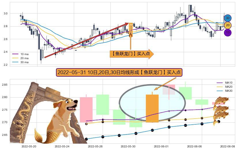 形态多维评估: ⚀ 2022-05-31日显现 10日-20日-30日均线 【鱼跃龙门】买入点 看多信号,后市看涨,买入