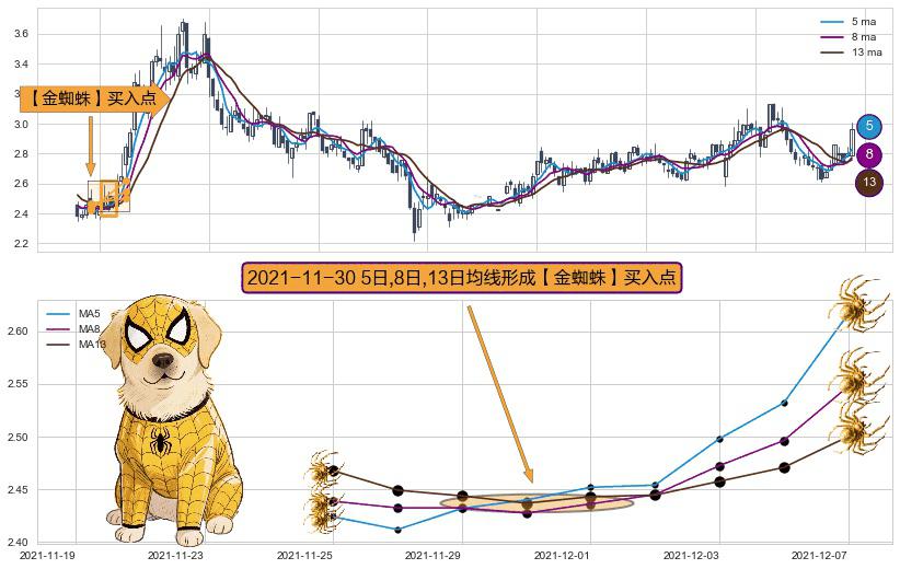 形态多维评估: ⚀ 2021-11-30日显现 5日-8日-13日均线 【金蜘蛛】买入点 看多信号,后市看涨,买入