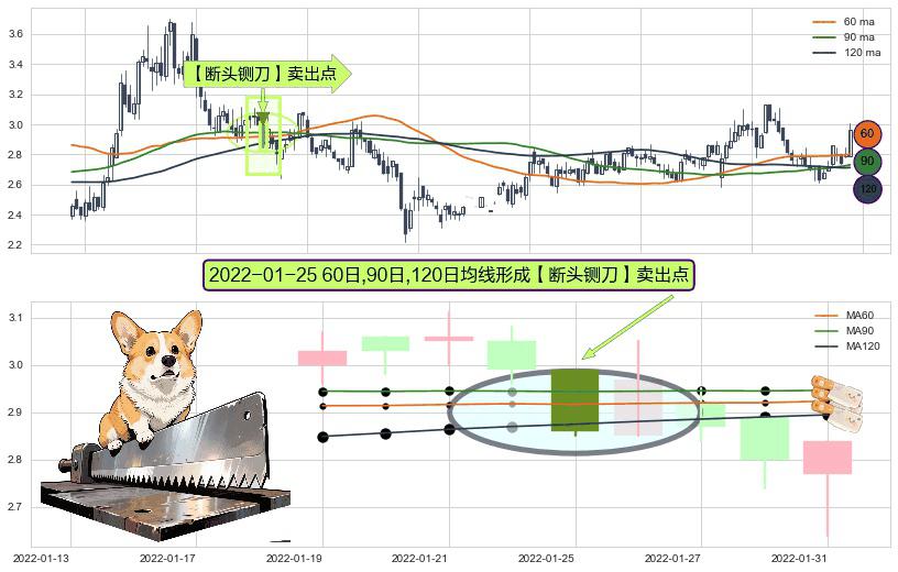 形态多维评估: ⚀ 2022-01-25日显现 60日-90日-120日均线 【断头铡刀】卖出点 看空信号,后市看跌,卖出
