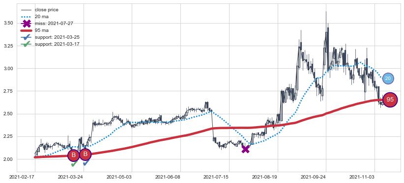 上涨趋势2021-02-17-2021-11-09,均线95确认关键支撑2处