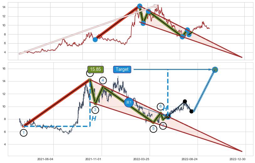 ➣ AI预测: 假定反转启动后, 第❶目标位置(2023-11-13, 9.04)