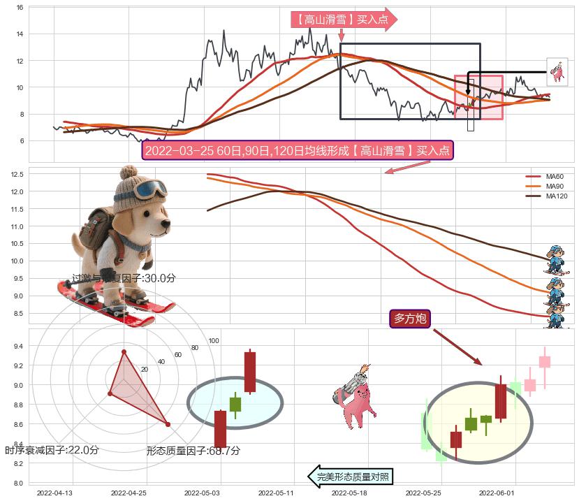 | 3 🅚:冉冉上升|稳步上涨 ➕ 🎢:【高山滑雪】买入点均线组合买入点信号形成后,猜想后续下行结束,持续反弹上涨(均值回复) ☞ 看多信号 ⇥ 【均线】交织【🅚线】⇥ 综合量化分数: 55 | > |