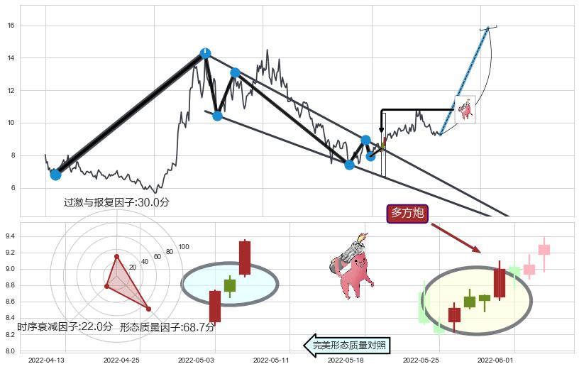 ➢ 【买1】: 激进型 买点 →(2022-05-26: 8.42 )形成突破降🚩楔型【整理】形态