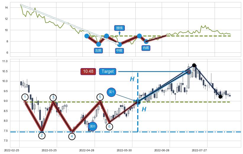 ➢ 图示②④⑥三个波谷均在 8.96 附近成功获得【支撑】→反弹上涨