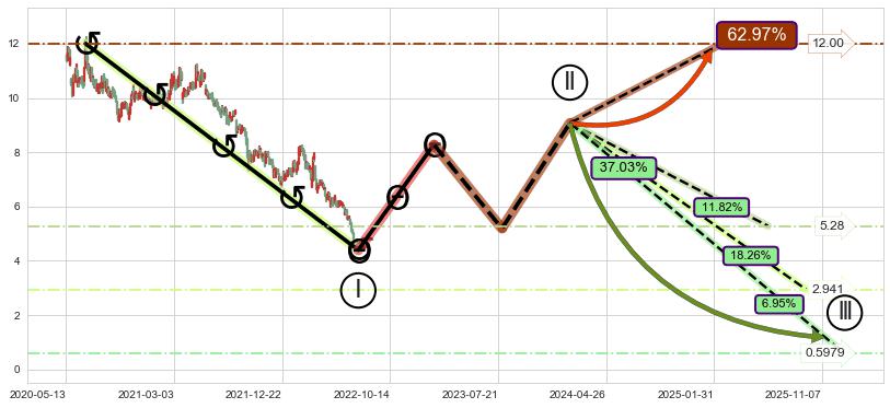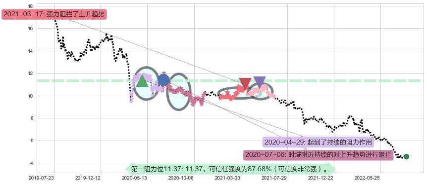 ♘ 阻力价格位11.37,可信任强度87.68%,距离最后交易2022-08-12形成的收盘价格4.57相差 +148.83%