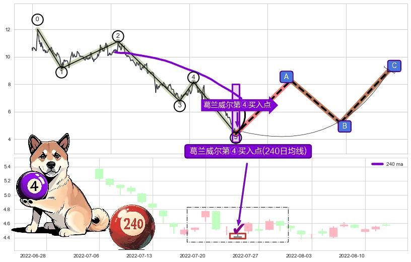 ➢ 收盘价(2022-07-25: 4.40 )→回踩→第一根k线高点(2022-07-19: 4.54 )