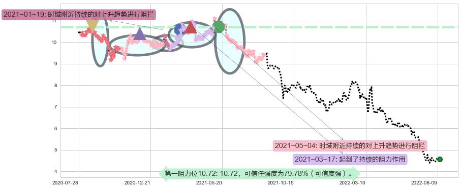 ♘ 阻力价格位10.72,可信任强度79.78%,距离最后交易2022-08-12形成的收盘价格4.57相差 +134.60%