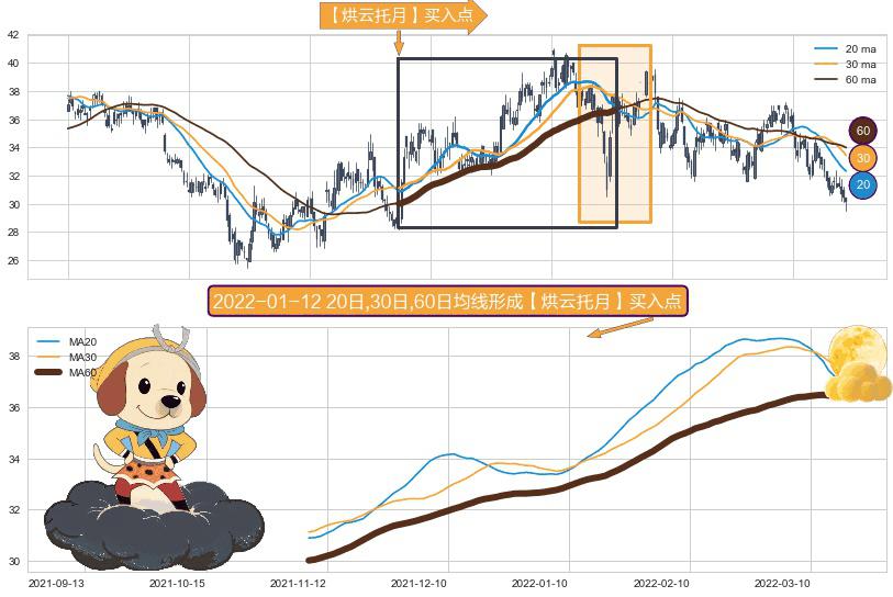 ⚀ 2021-11-09日-2022-03-18日显现 20日-30日-60日均线 【烘云托月】买入点 看多信号,后市看涨,买入