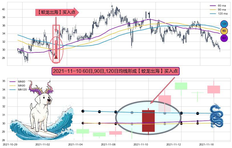 ⚀ 2021-11-10日显现 60日-90日-120日均线 【蛟龙出海】买入点 看多信号,后市看涨,买入