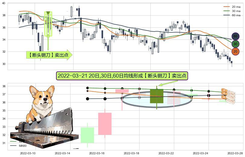 ⚀ 2022-03-21日显现 20日-30日-60日均线 【断头铡刀】卖出点 看空信号,后市看跌,卖出