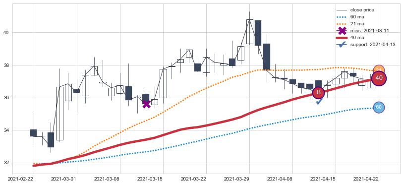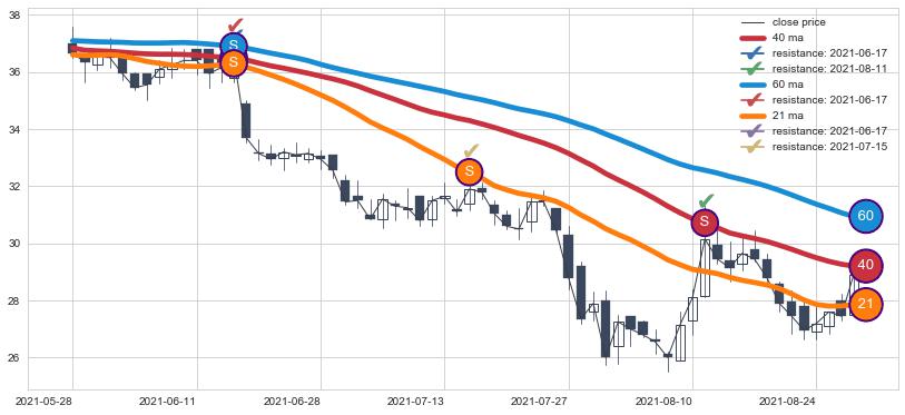 ⚂ 2022-06-24-日均线向上突破,2022-07-14-日重新下穿均线破位,均线阻力再次生效